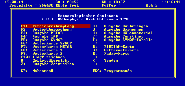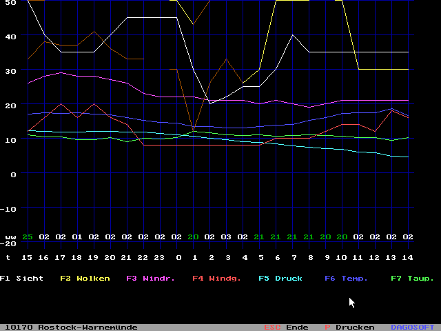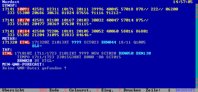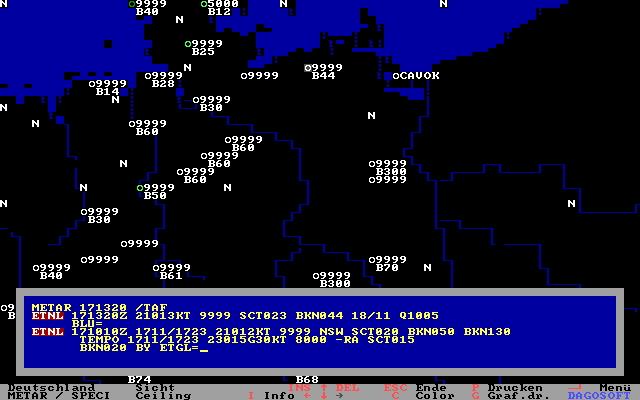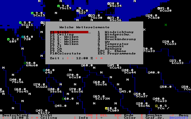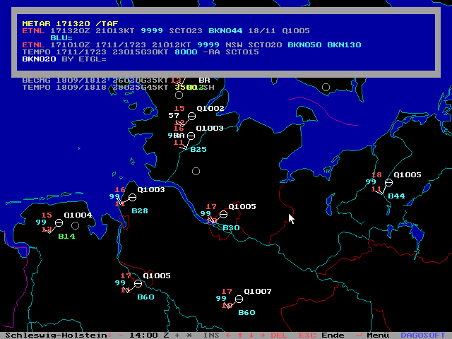 Es wird die SYNOP-Wetterkarte ausgegeben. Über ein Menü können zwei