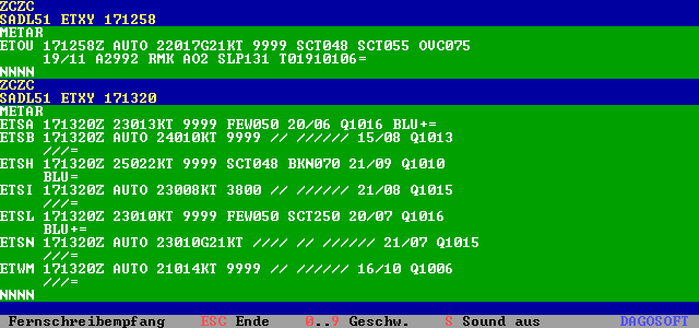 Wie METAR, es werden SYNOP-Meldungen ausgegeben.