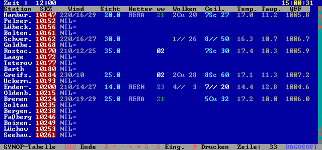Abb. A1-06 Ausgabe SYNOP-Tabelle