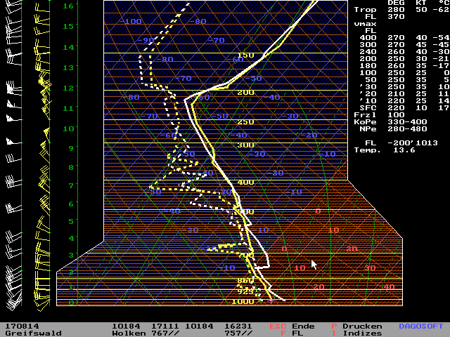 Über ein Menü kann eine Radiosondenstation ausgewählt werden. Es werden zwei