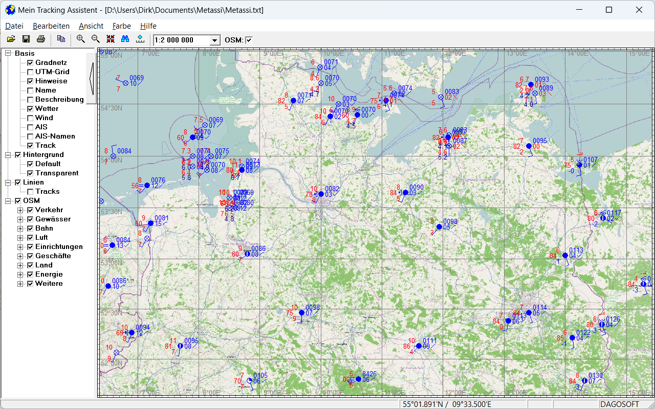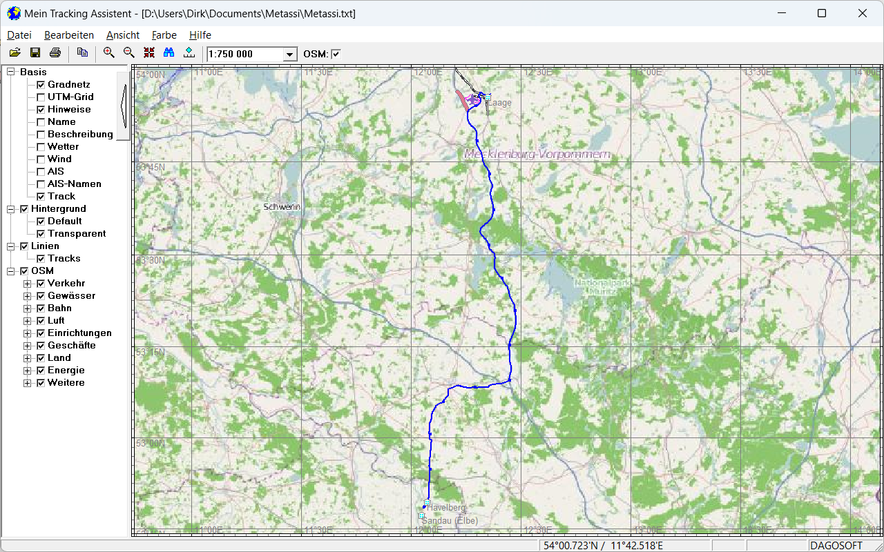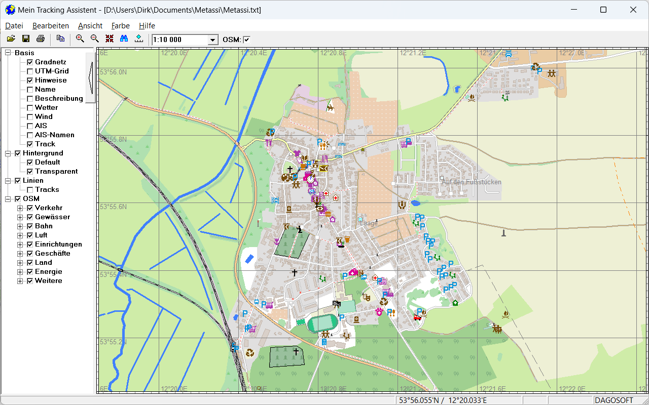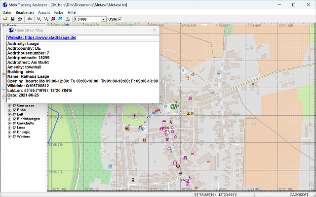 Das Programm "Mein Tracking Assistent" stellt Daten von Open Street Map sowie