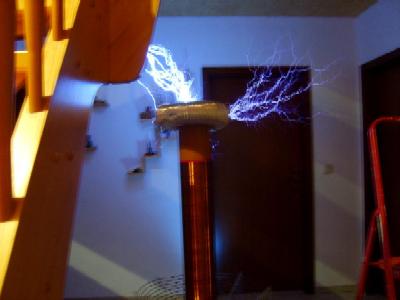 Mittlerweile reichen die Funken über einen Meter weit, das entspricht einer Spannung von über einer Million Volt!