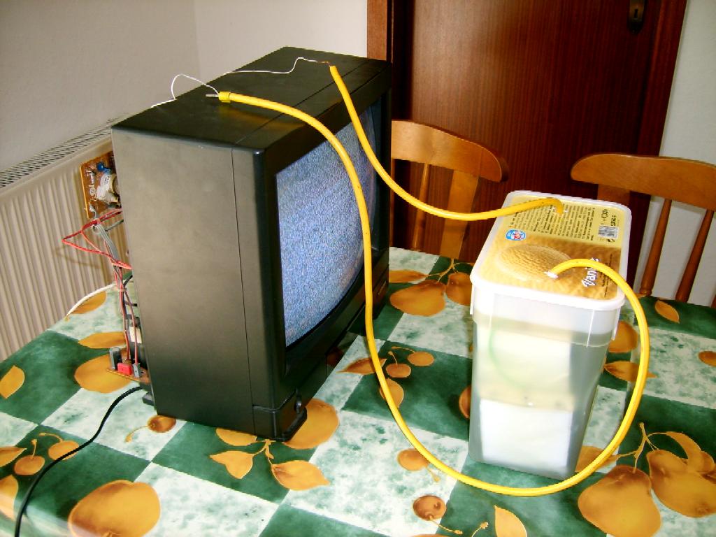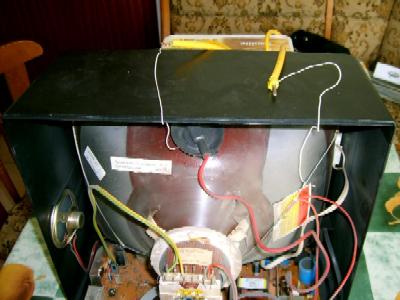 Vor dem Entladen wurde der Kondensator vom TV-Gerät getrennt. Der Fernseher hat