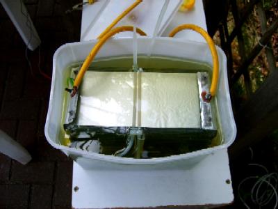 Zwei Blöcke wurden parallelgeschaltet und in einem Eisbecher in Rapsöl versenkt.